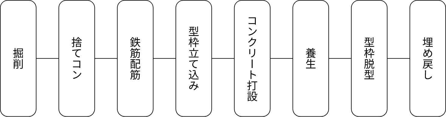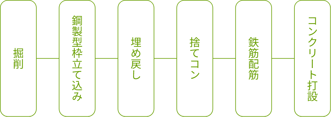 従来の基礎躯体工事とは違って埋め戻し後に配筋やコンクリート打設を行うため、解体作業の必要がなく工期短縮につながります。